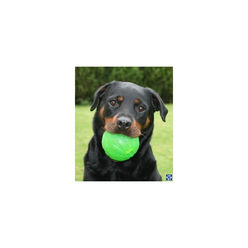 Les chiens peuvent prendre la Balle Fluo dans leur gueule et faire travailler leurs mâchoires pendant de longs moments.