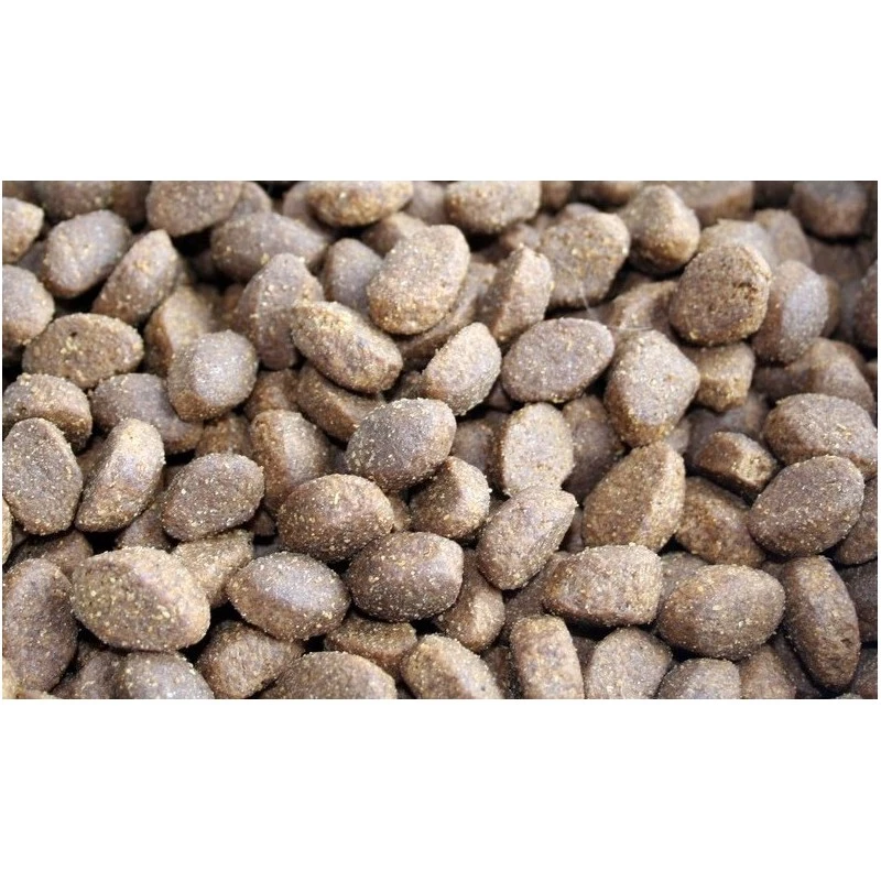 Protéines brutes 41 %, huiles et matières grasses brutes 18 %, fibres brutes 3 %, cendres brutes 9,5 %, humidité 8 %, Oméga-6 3,5 %, Oméga-3 0,69 %, calcium 1,81 %, phosphore 1,46 %.