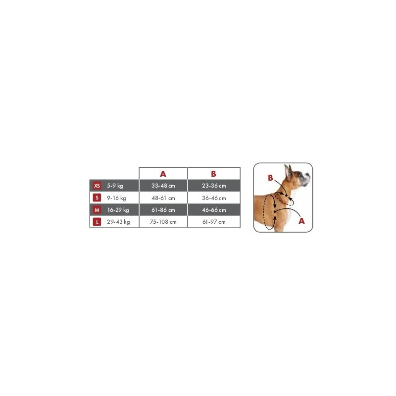 XS : chiens de 5 à 9 kilos / de 33 à 48 cm / de 23 à 36 cm
