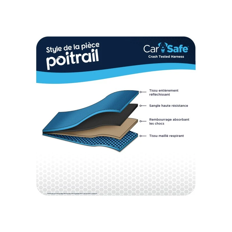 Le chien doit être sur la banquette arrière attaché avec un harnais de voiture pour chien, ou bien dans le coffre. Ne placez jamais votre chien sur les sièges avant de la voiture. Pour raisons de sécurité, il est préférable de maintenir une laisse au harnais de votre chien lors de vos déplacements en voiture.