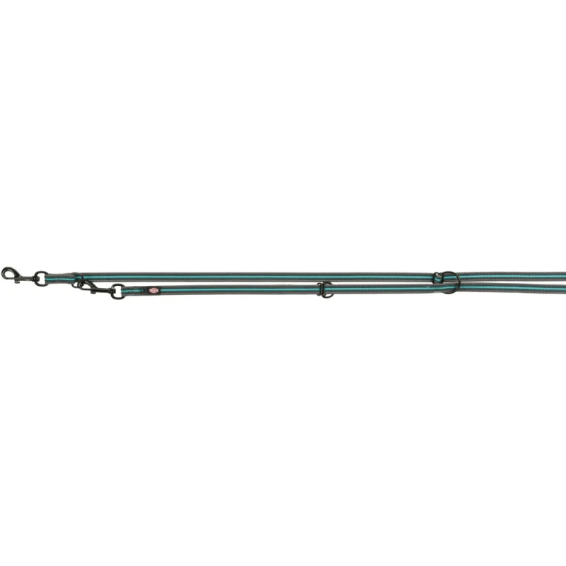 Nouveau et utile : les 2 anneaux sont réglables en continu sur toute la longueur de la laisse grâce à leur fixation sur un passant en 8 coulissant pour des emplois adaptés (autour de la taille par ex.)
