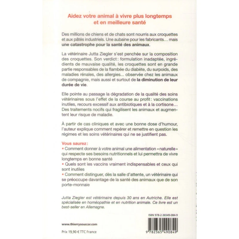 La vétérinaire Jutta Ziegler s’est penchée sur la composition des croquettes. Son verdict : formulation inadaptée, ingrédients de mauvaise qualité, les croquettes sont en grande partie responsables de la flambée du diabète, du surpoids, des maladies rénales, des allergies… observée chez les animaux de compagnie, mais aussi et surtout de la diminution de leur durée de vie.